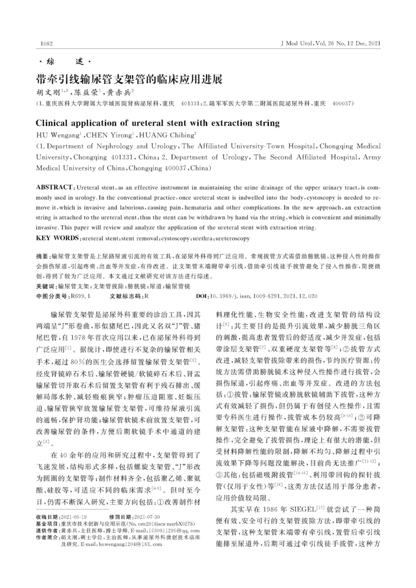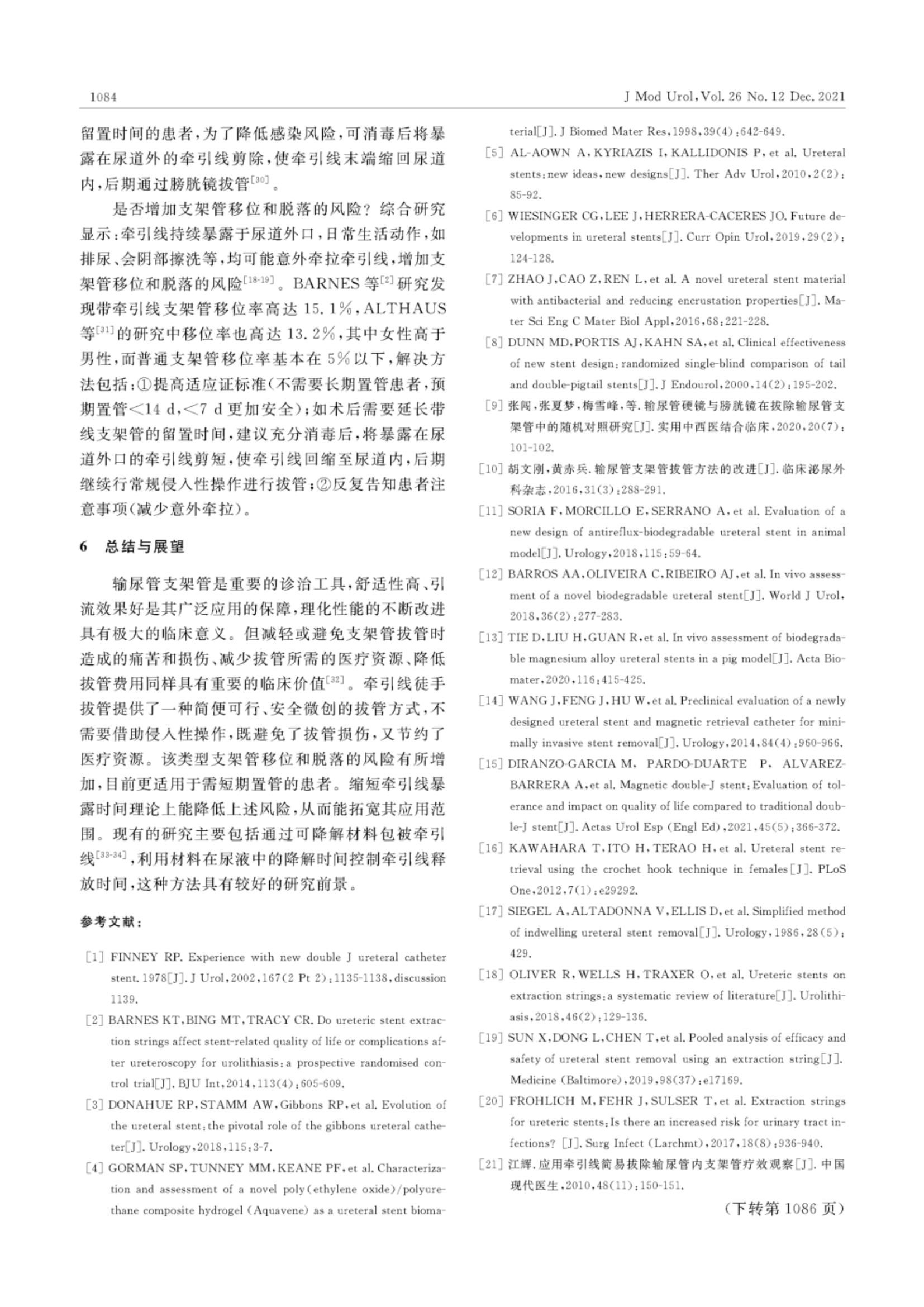 帶牽引線輸尿管支架管的臨床應(yīng)用進(jìn)展